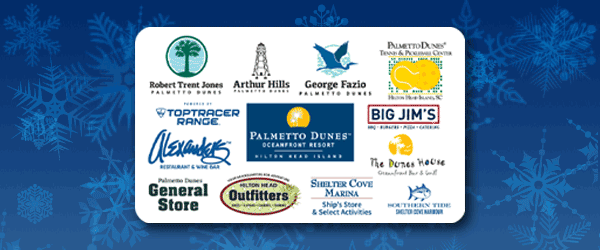 E-Gift Cards can be purchased online. To ensure the safety of your personal data, e-gift cards are available for purchase in our secure online store or physical cards available in person at resort pro shops or the Welcome Center only. If you have any questions or need assistance, please email giftcards@palmettodunes.com.